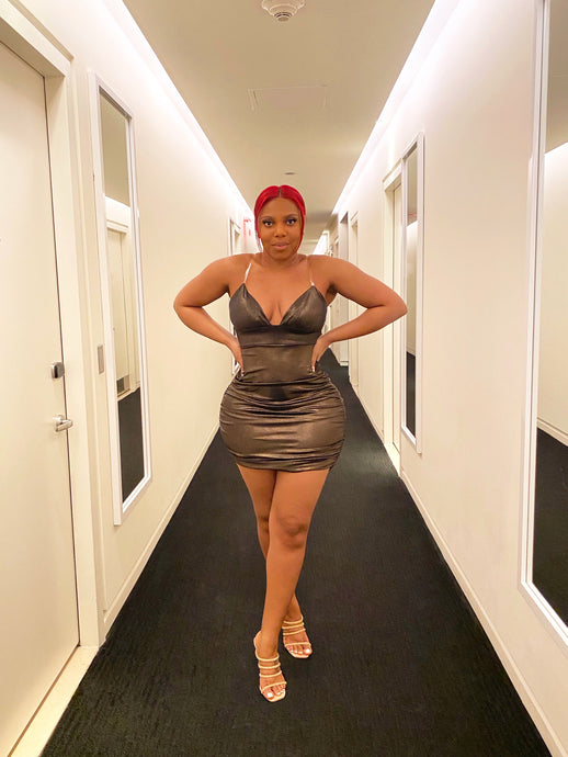 Prime Time Mini Ruched Dress in Bronze